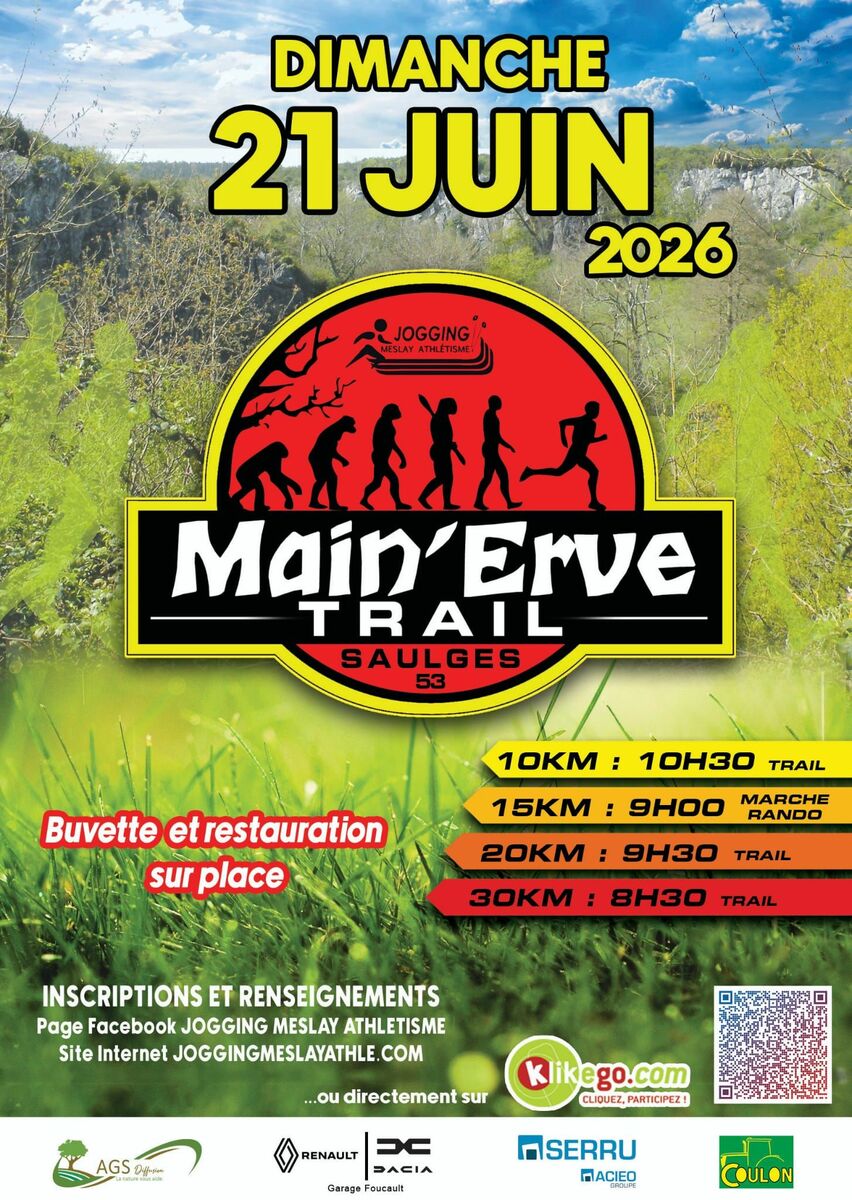 L’équipe du Jogging Meslay Athlétisme est fière de vous donner rendez-vous pour la 7ᵉ édition du Main’Erve Trail, une expérience sportive unique au cœur de paysages naturels préservés.