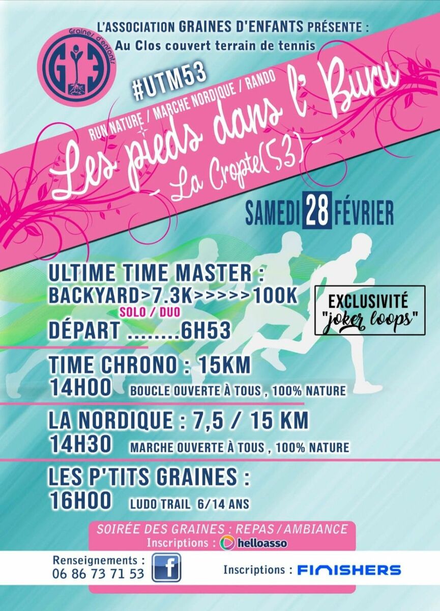 Au programme du samedi, des JMA aux Pieds dans l'Buru à La Cropte, au trail nocturne des Alpes Mancelles et dimanche chez LM Petits Pas.